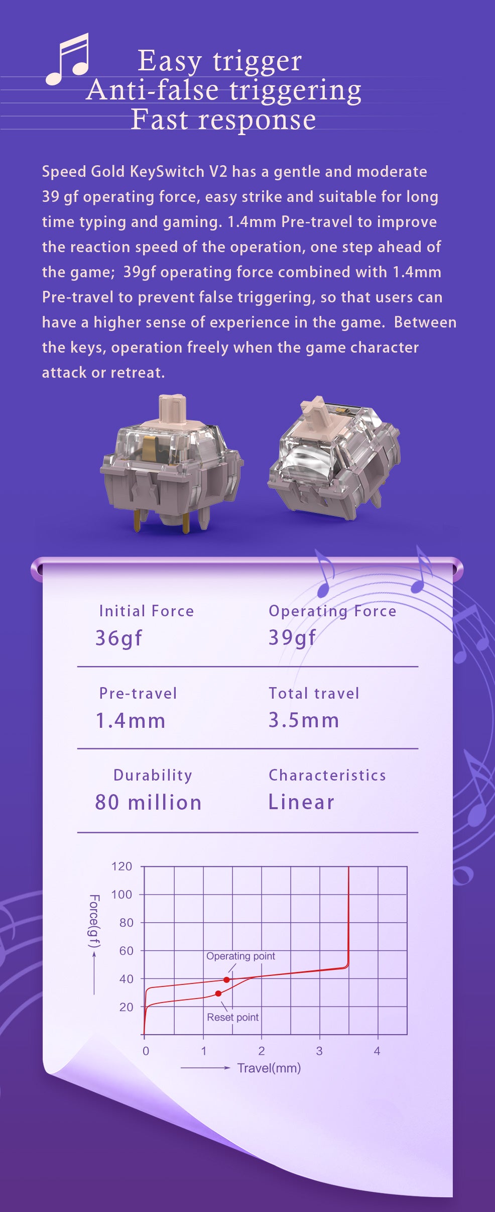 • Operating force:  39gf