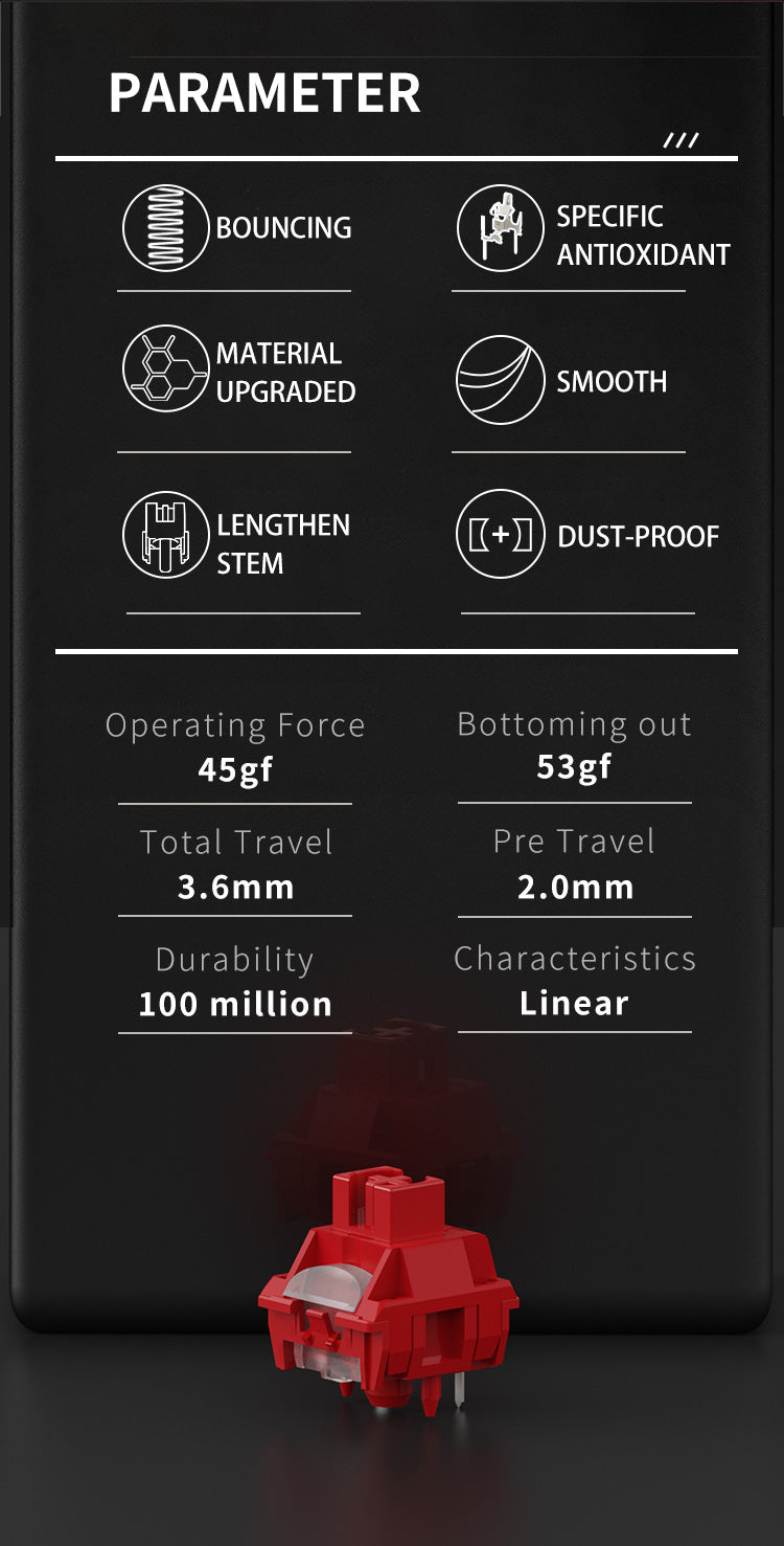 • Bottom-out Force:  53gf
