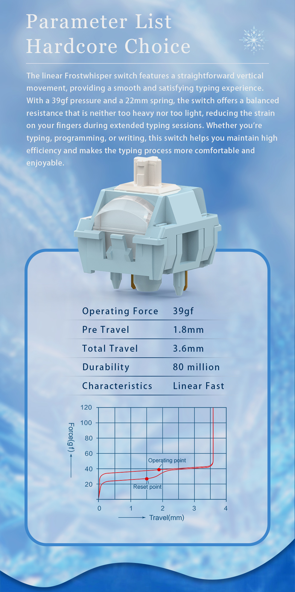 • Lifetime: 80million times keystroke